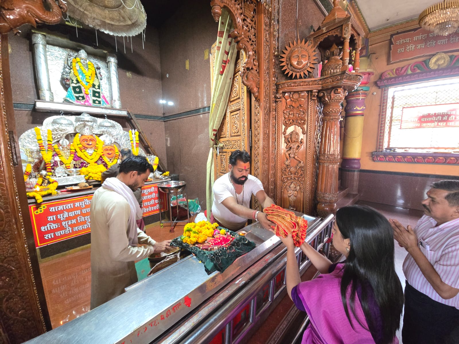 बड़वानी 18 मार्च 2026/आगामी चैत्र नवरात्रि पर्व के मद्देनजर कलेक्टर श्रीमती जयति सिंह ने जिले के प्रसिद्ध धार्मिक स्थल बड़ी बिजासन माता मंदिर पहुँचकर दर्शन किए और परिसर की व्यवस्थाओं का निरीक्षण किया। इस दौरान उन्होंने श्रद्धालुओं की सुगमता और सुरक्षा को प्राथमिकता देते हुए अधिकारियों को आवश्यक दिशा-निर्देश जारी किए। निरीक्षण के दौरान कलेक्टर ने मंदिर परिसर में श्रद्धालुओं के लिए पर्याप्त छाव की व्यवस्था करने के निर्देश दिए साथ ही वाहनों के आवागमन में बाधा न हो, इसके लिए सुव्यवस्थित पार्किंग, मंदिर मार्ग और परिसर में विद्युत आपूर्ति और पर्याप्त रोशनी (स्ट्रीट लाइट्स) सुनिश्चित करने के निर्देश दिए। श्रद्धालुओं के लिए शुद्ध पेयजल और प्रसादी/भोजन वितरण स्थलों पर स्वच्छता के कड़े मानक अपनाने के निर्देश दिए। नवरात्रि के दौरान मंदिर में विशेष सफाई अभियान चलाने तथा डस्टबिन की समुचित व्यवस्था रखने के निर्देश दिए।